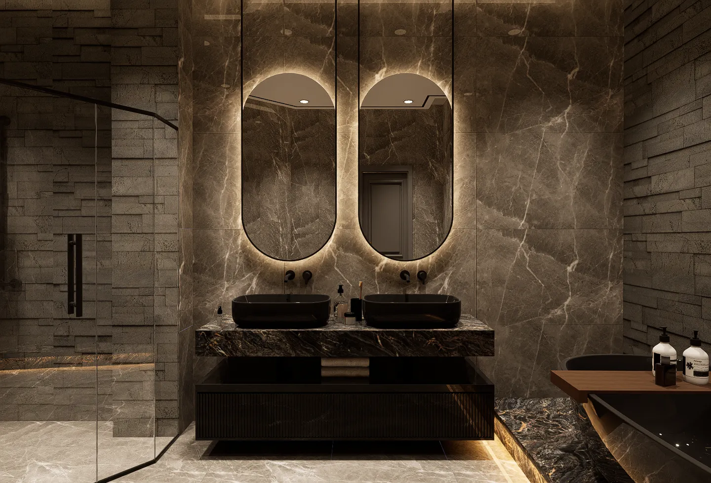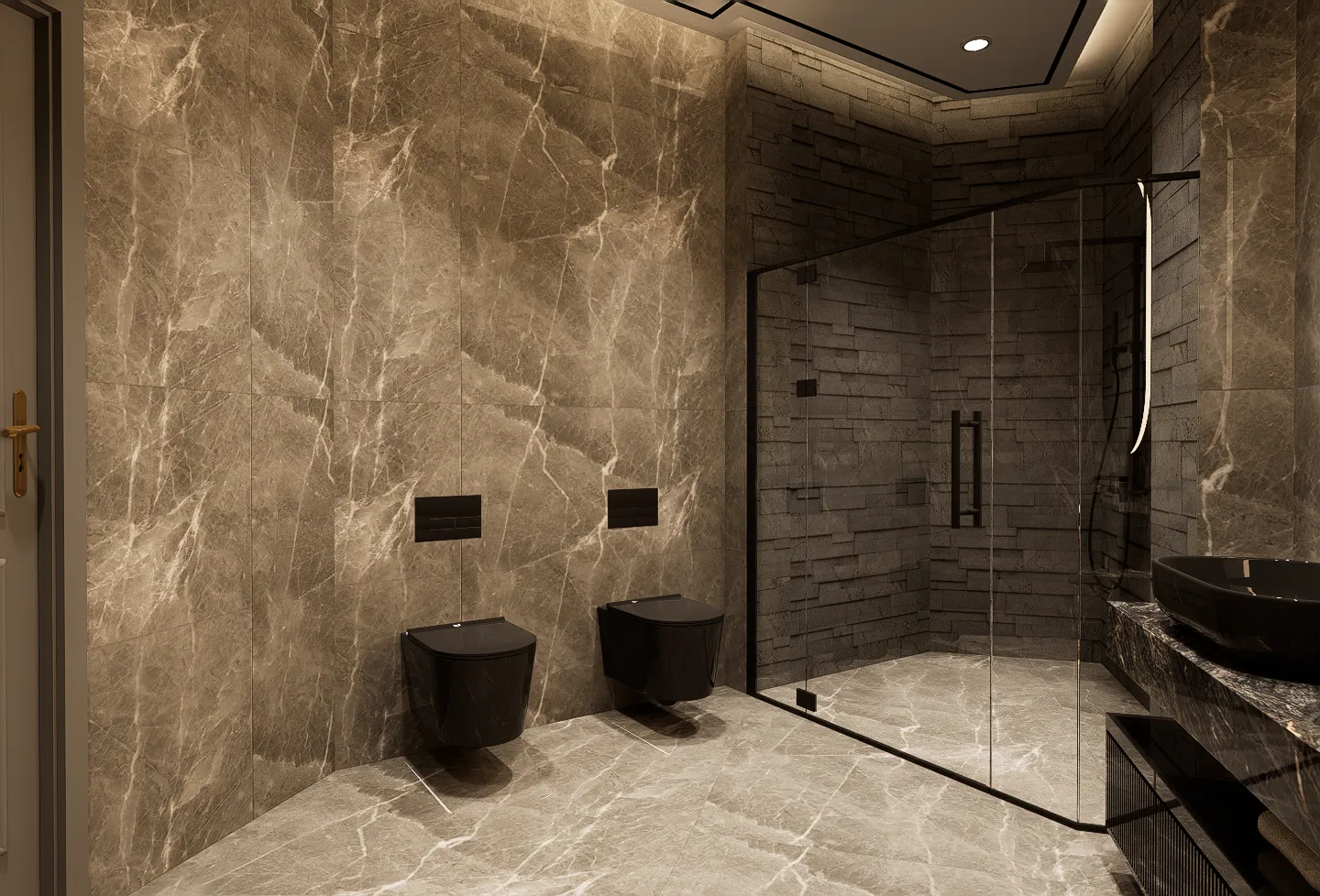 Designed for both relaxation and entertainment, the villa is divided into two distinct wings: one dedicated to restful, peaceful sleeping quarters, and the other tailored for vibrant gatherings. With seven master suites (expandable to nine if desired), grand 3.2 to 4-meter ceilings, and dual elevators, this residence exudes opulence at every turn. Indulge in luxury with an infinity pool, a private gym, sauna, wine cellar, and a chef’s kitchen equipped with a dedicated food elevator. A magnificent indoor waterfall above the main entrance adds to the grandeur of the space.